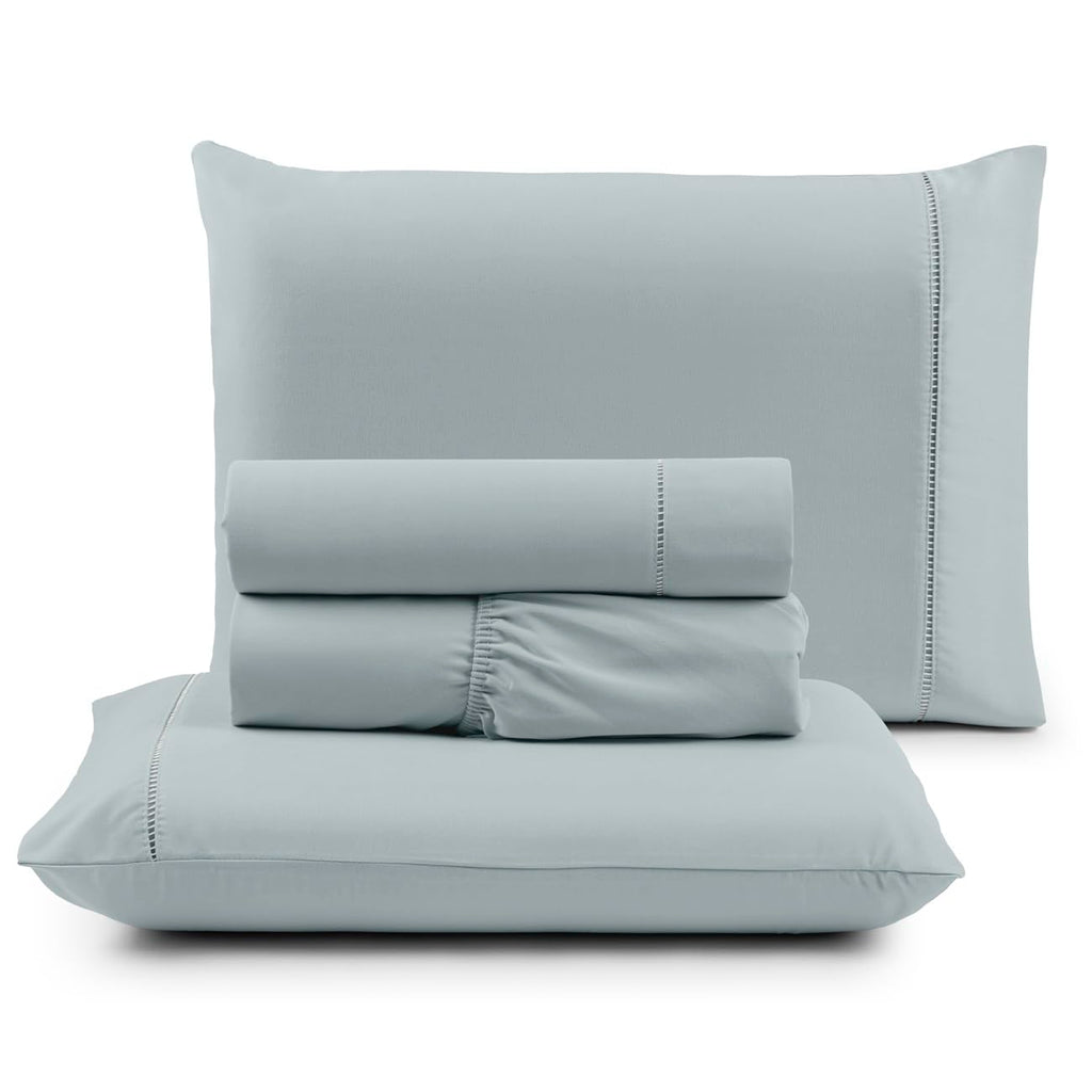 - Jogo de cama confeccionado em tecido Percal 400 Fios de Poliéster com detalhes em ponto palito
